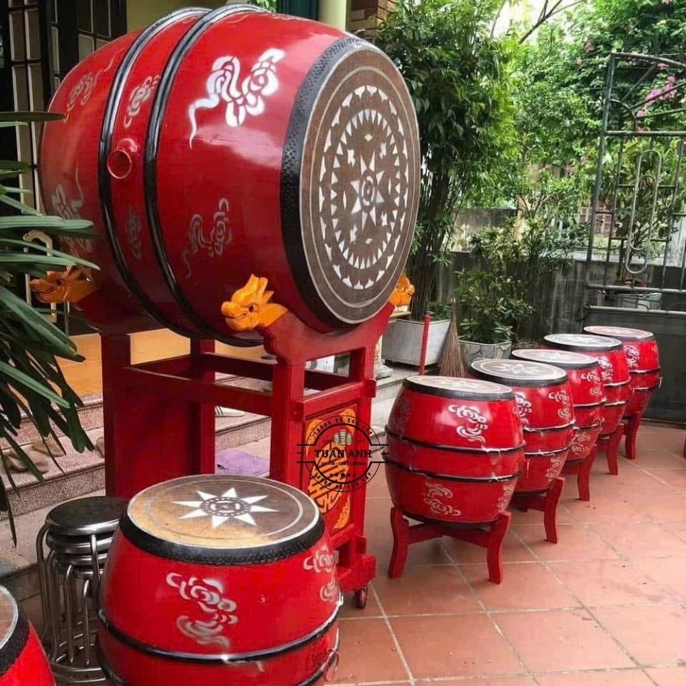 Để phù hợp với không gian trang trọng của các đình, chùa hay nhà thờ, bà con có thể nhấn vào xem Bộ sưu tập trống cung tiến, trống đình chùa cao cấp của xưởng em. Các mẫu này đều được lựa chọn gỗ mít già và da trâu loại 1, đảm bảo tiếng vang và độ bền hàng chục năm.