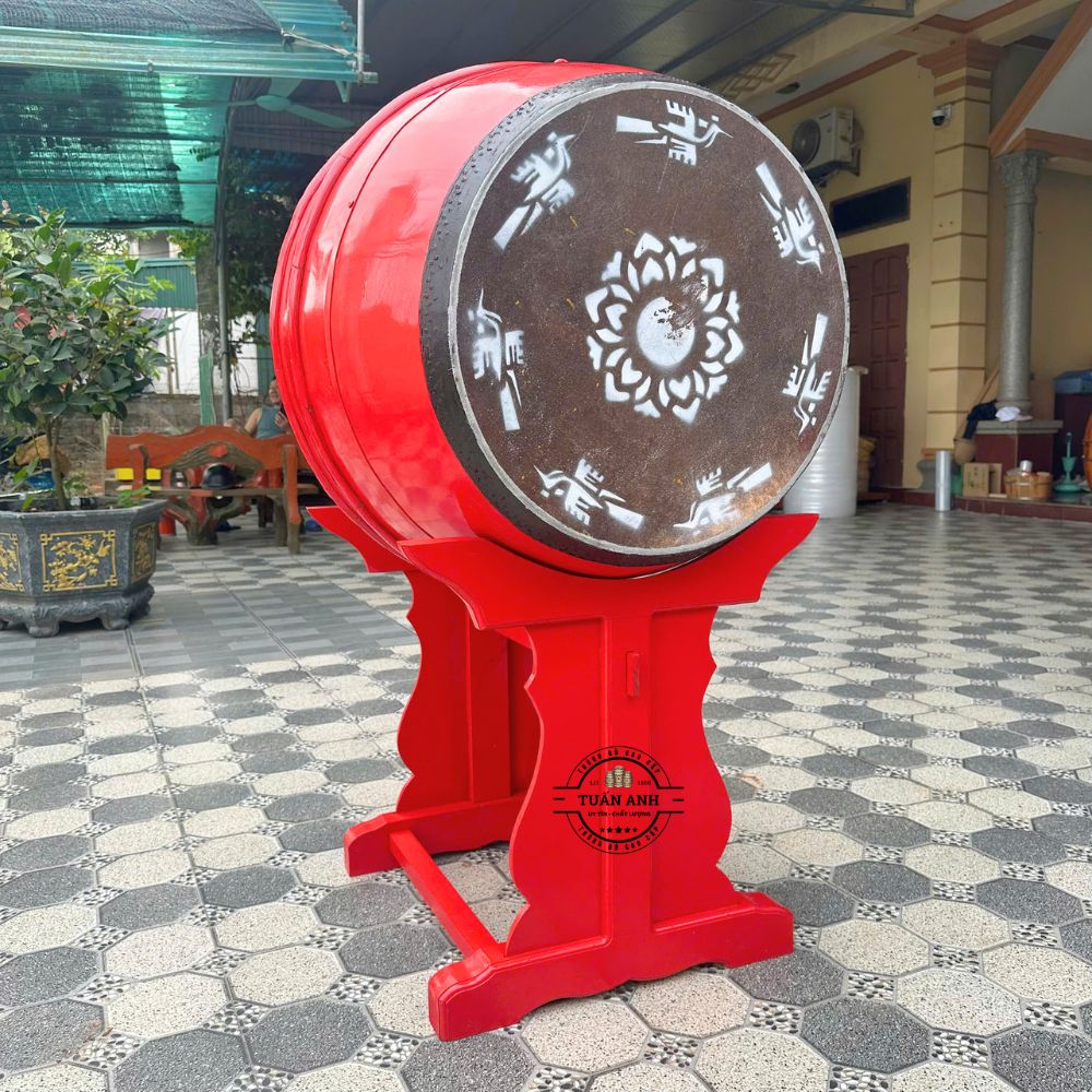 Trống Bát Nhã gỗ mít, gỗ lim 80cm cao 1m6 – Da trâu âm chuẩn