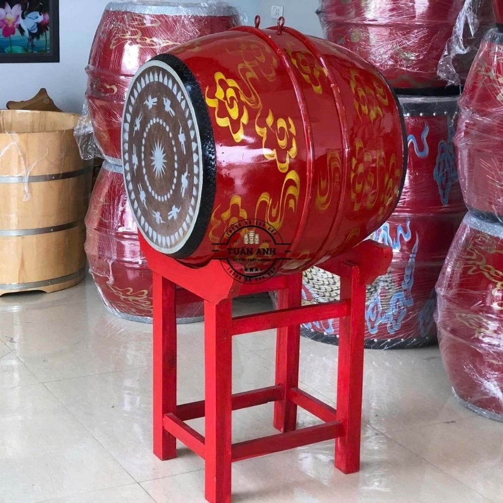 Trống khai giảng kích thước lớn: Thường có đường kính mặt trống từ 60cm - 80cm, chiều cao 80cm - 100cm. Đây là "linh hồn" của buổi lễ khai giảng, tạo không khí uy nghiêm, long trọng.